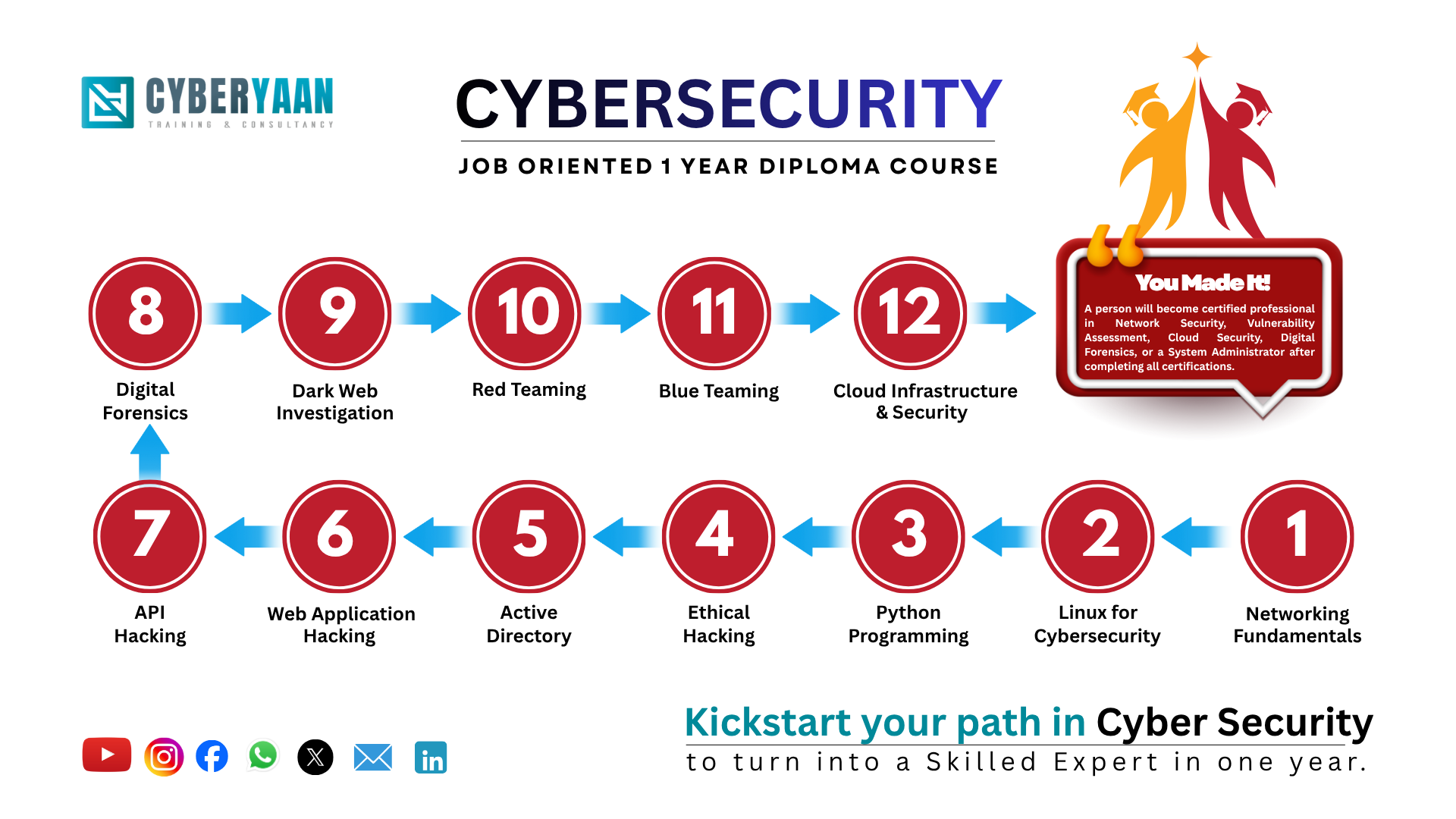 Authentic specialization from Cyberyaan offering quality 1 Year Diploma in Cyber Security Course Powered by AI, specially designed for Information Security aspiring students.